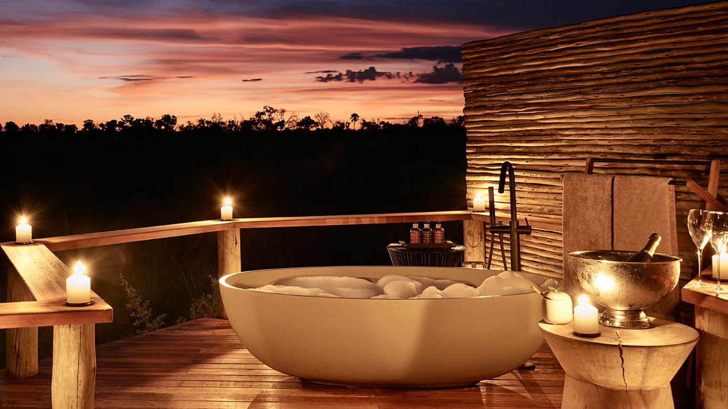I’m talking a magnificent clawfoot one, or one with gorgeous views, maybe even something rustic up in the mountains. Because why not? There’s nothing more relaxing than enjoying a soak while on vacation. Oh, and that incredible bathtub up there? It’s located at Sable Alley in Botswana.