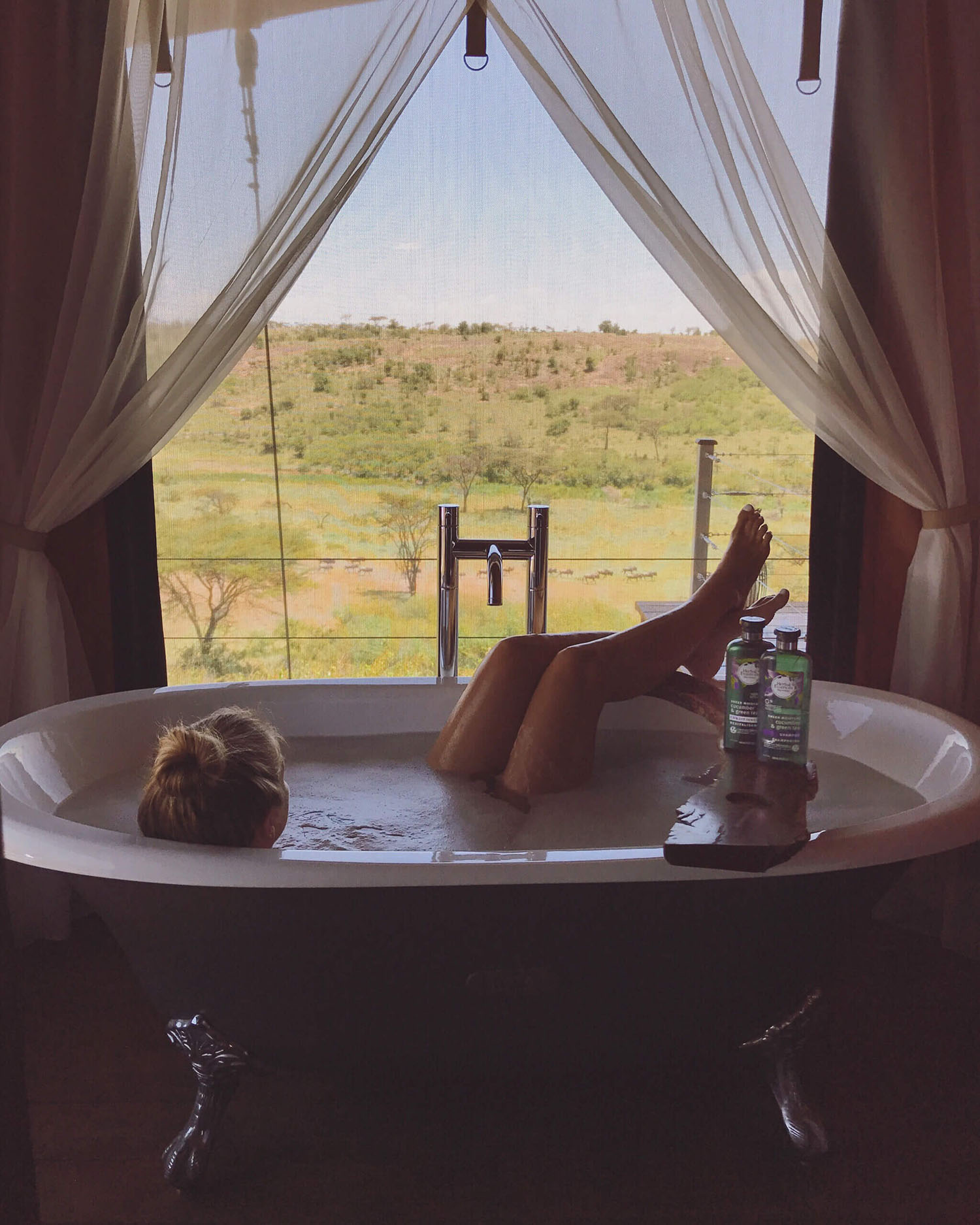 During my stay at Cottar’s 1920s Safari Camp, I was immediately drawn to their canvas safari bath. The unique canvas baths are set up facing the savannah, allowing you to soak and relax after a long game drive. And who knows, maybe you’ll see some wildlife while you take a dip.