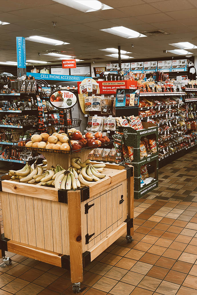 You can find everything from your go-to snacks, to stuffed animals for the little ones, to checking your e-mail via the on-site WiFi, and even trucking gear.