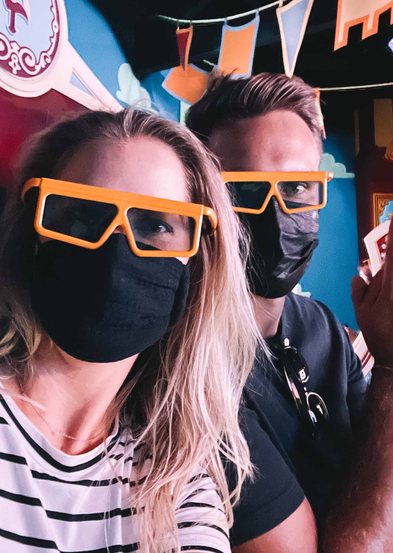 Keep in mind that you cannot take off your mask while in line for a ride. So, if you’re about to wait 55 minutes to get on a ride, be sure to quench your thirst or eat your snacks before getting in line.