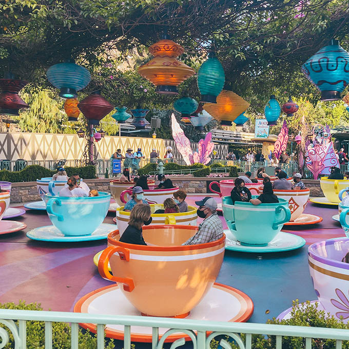 If you are going to Disneyland with little kids: Head straight onto the Disneyland Railroad for a full loop around the park (if you plan to ride it at all). Then, head to It’s a Small World. On the day of our visit, those two rides had a minimum 45-minute wait the entire day due to social distancing. Then, be prepared to wait 20-30 minutes for most of the kiddie rides.