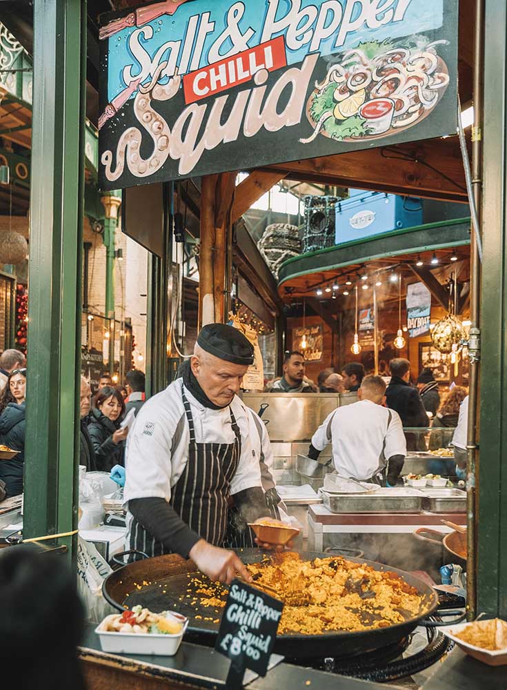 There’s no better place to find that odd ingredient—sumac, wild mushrooms, bee pollen to name a few. Sample a few cubes from world-famous Neal’s Yard Dairy or the aged beef from Ginger Pig. Gorge your inner English with artisanal pastries, plum bread, and pork pies.