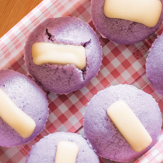 Ube Puto Cheese: This sweet rice cake with purple ube is not only eye-catching but it’s super tasty! It’s often topped with cheese to balance the sweetness.