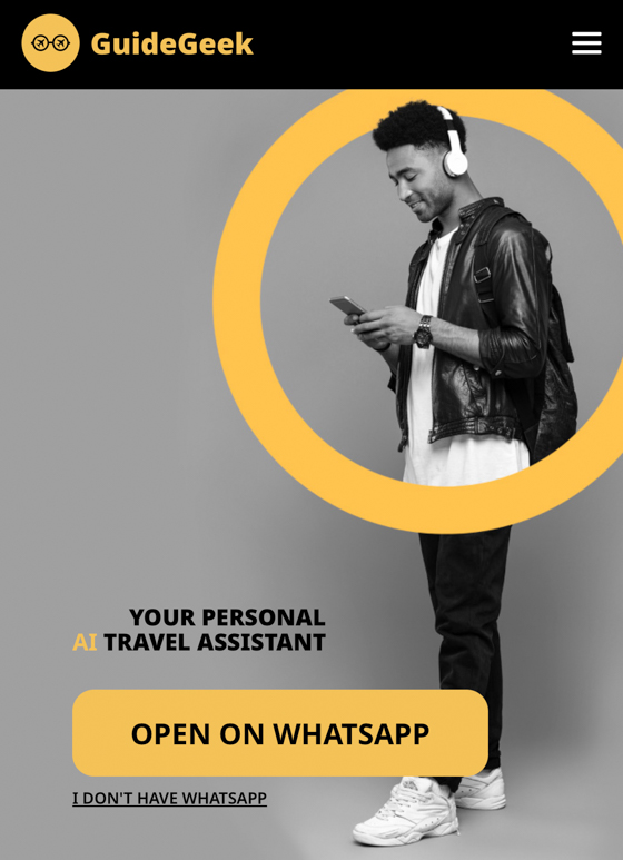 The first step in utilizing GuideGeek for travel planning is visiting GuideGeek.com from your phone or computer. If you aren’t already using WhatsApp, download the app. Then, scan the QR code to open WhatsApp and start messaging!