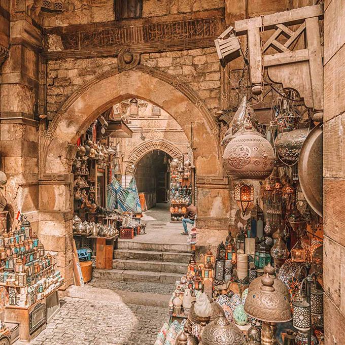 The closest airport to El Gouna is in Hurghada (approximately a 30-minute drive). Spend your last day in Cairo wandering around the captivating Khan El-Khalili Bazaar, which is said to be the largest bazaar in the Middle East.