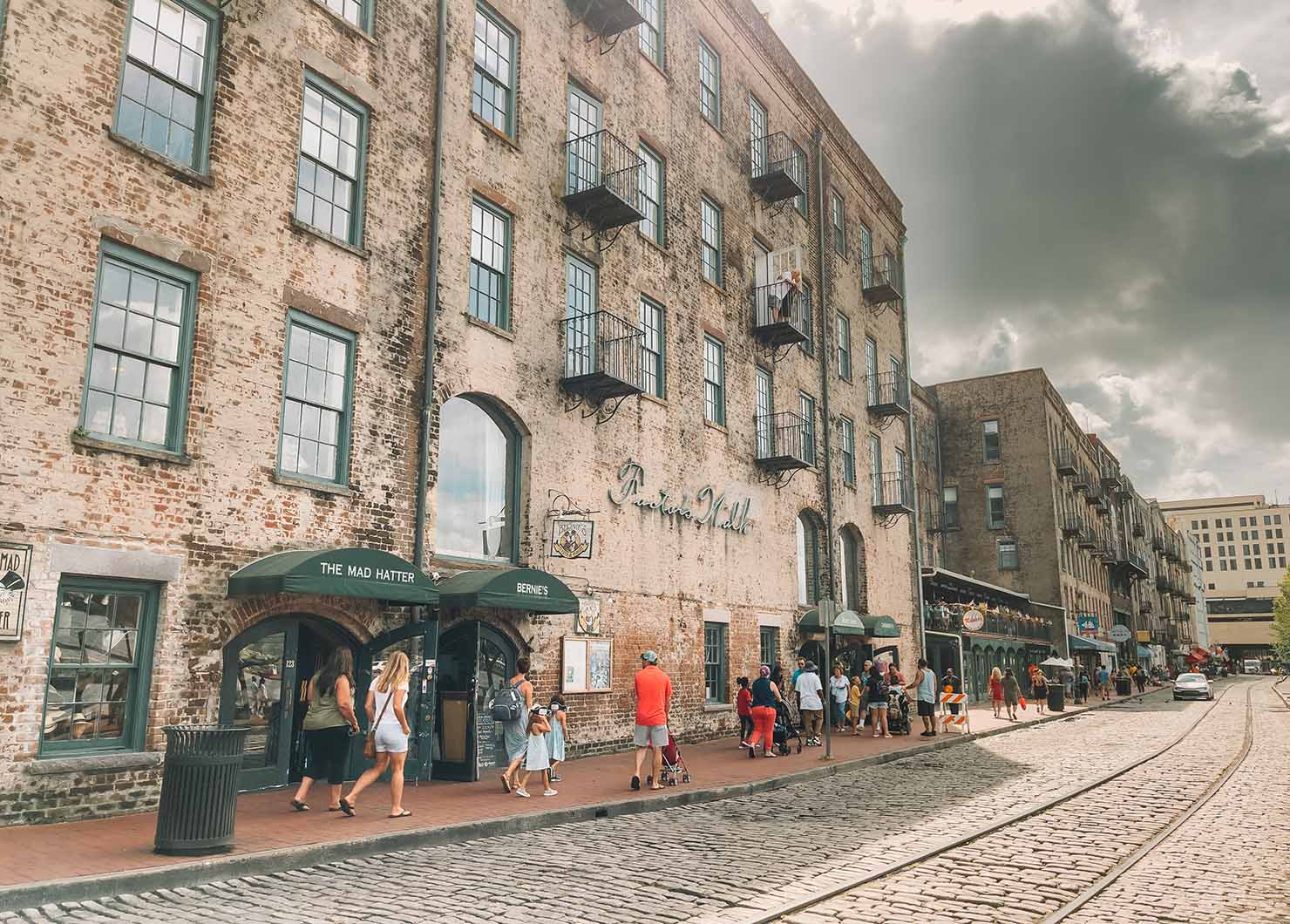 River Street is another must-see. Beside the old cotton warehouses, you’ll find 70+ galleries, shops, restaurants, pubs, and other hotspots along Savannah’s Waterfront.