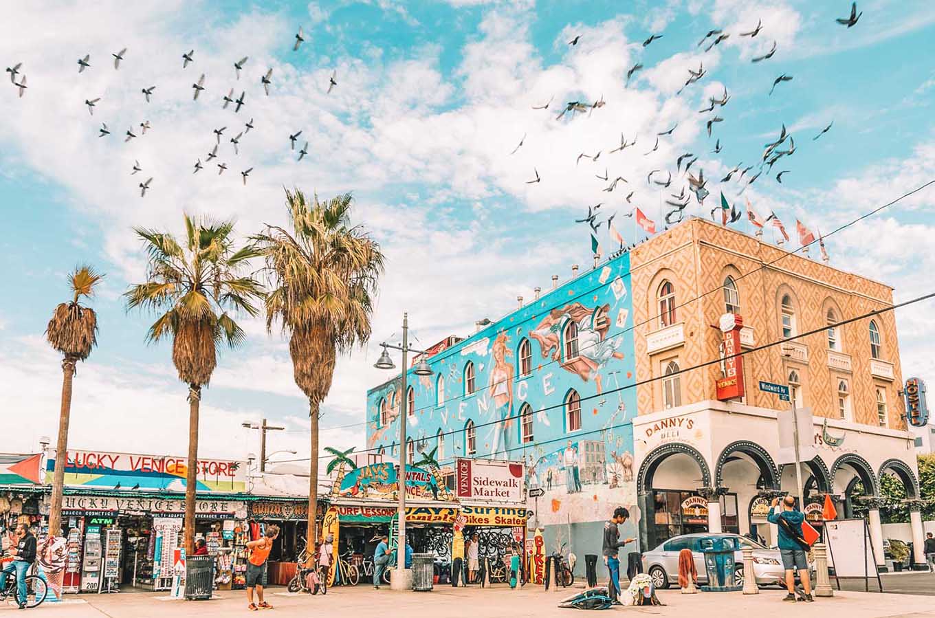 The Venice Boardwalk extends along the coast to Santa Monica – make sure you carve out time for an afternoon on the pier! Packed with eateries, spas, boutique shops, fitness centers, and cocktail joints, the boardwalk is the ultimate destination in Venice, come rain or shine.