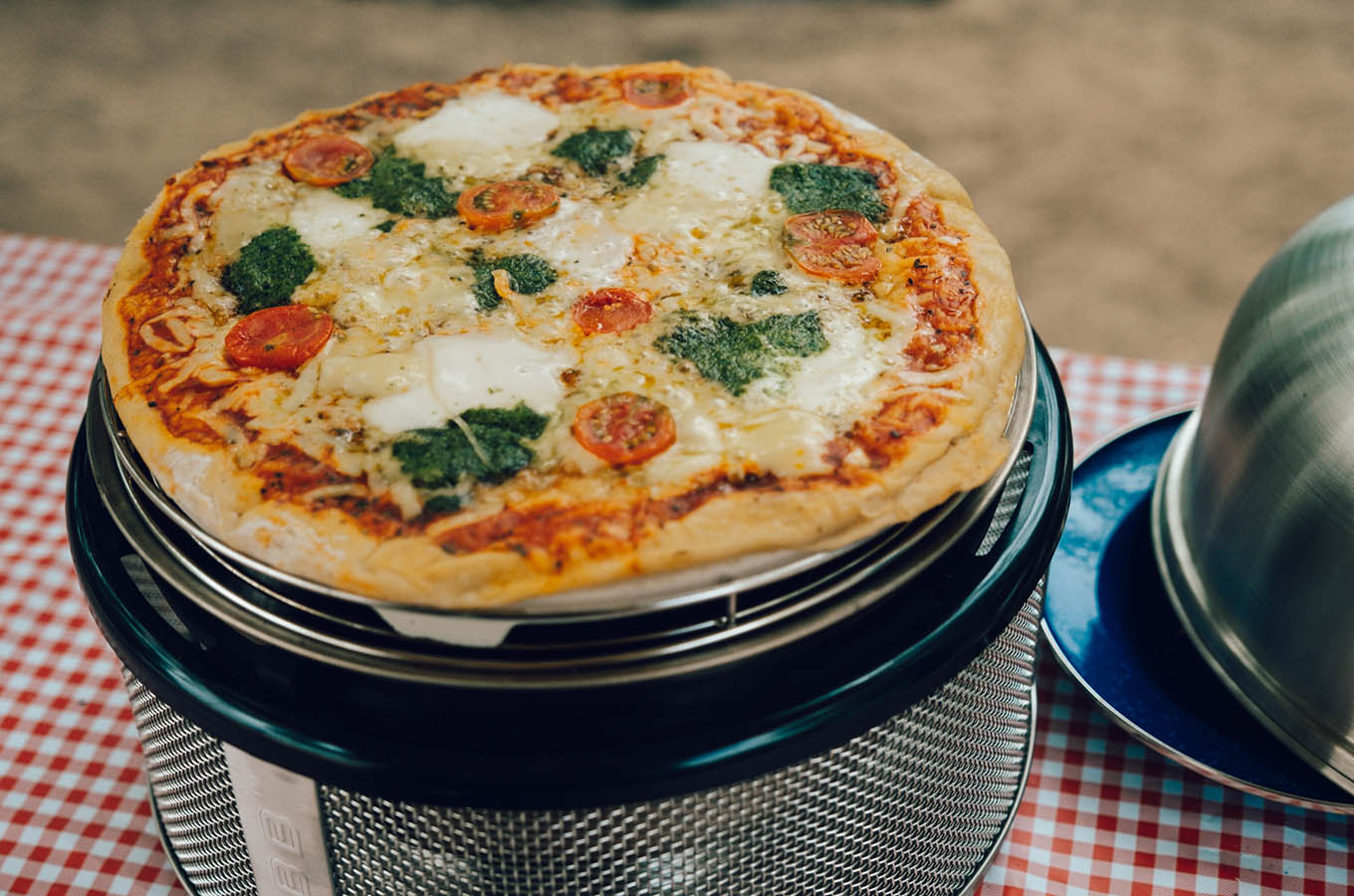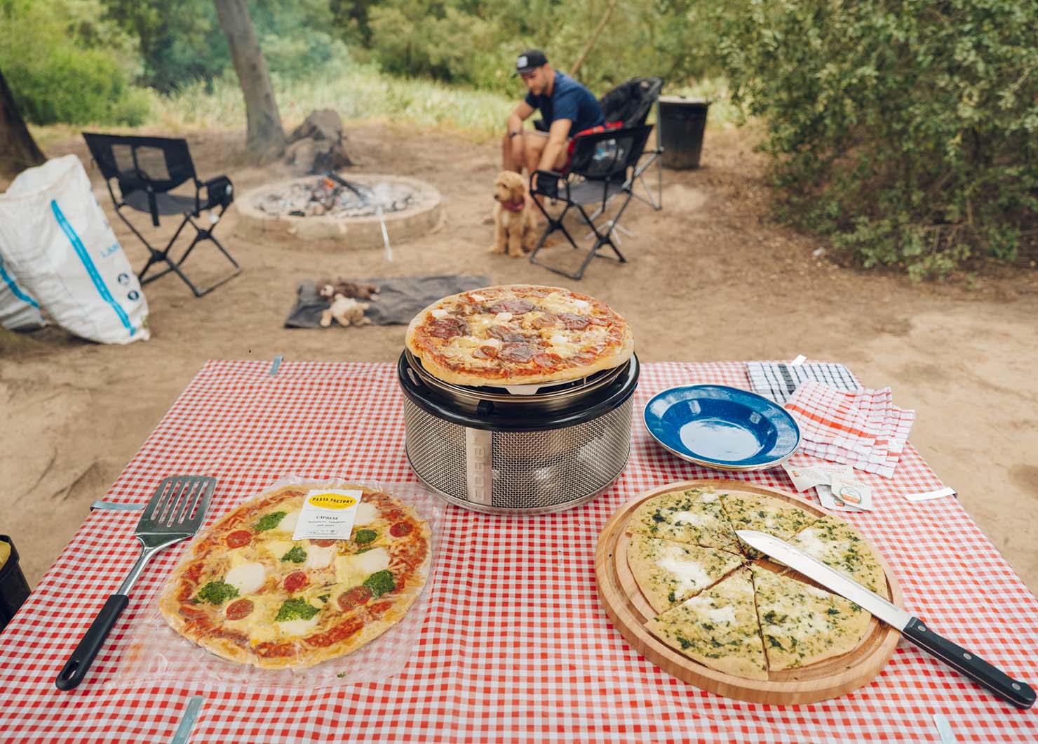 We buy pre-made refrigerated pizzas from our local store but you can bring all the ingredients and even bake from fresh dough with the COBB pizza stone, Salad for a Side Dish