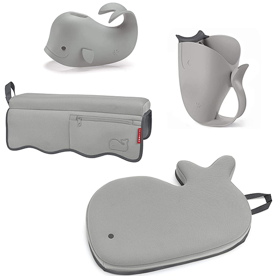 How cute are these bath essentials? The four-piece set includes a rinser, soft spout cover, padded elbow rest and kneeler. It’s BPA-free and Phthalate-free, too.