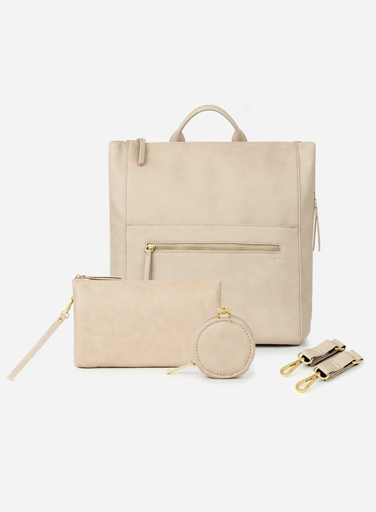 So, we opted for The Fawn + Nordstrom Square Diaper Bag Bundle in Beige, along with the Béis Baby Ultimate Diaper Bag Backpack in Black.
