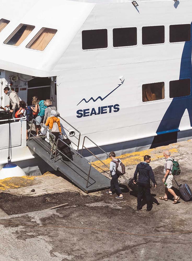 We chose to take SeaJet because it was *slightly* cheaper per person (a whole $30…and let me tell you, it was not worth it).