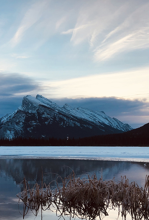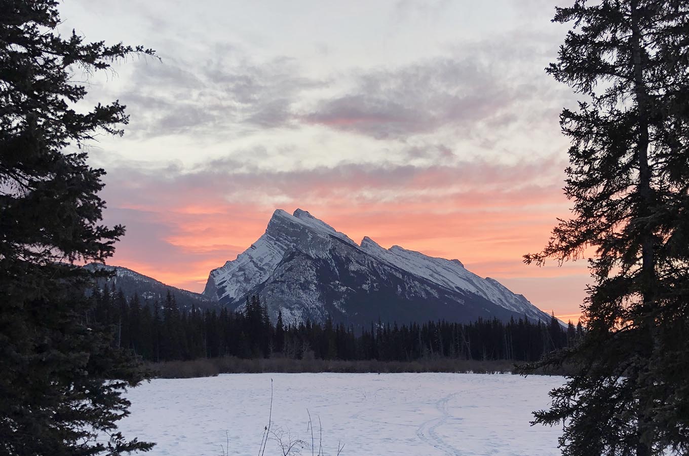 Vermillion Lake is located just outside Banff Town Centre and is the best place to watch the sunrise. Turn onto Vermillion Lakes Scenic Drive and Mount Rundle will be on your left. Drive down a little further to where there are some openings in the trees.