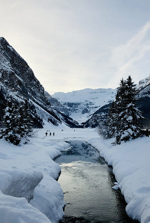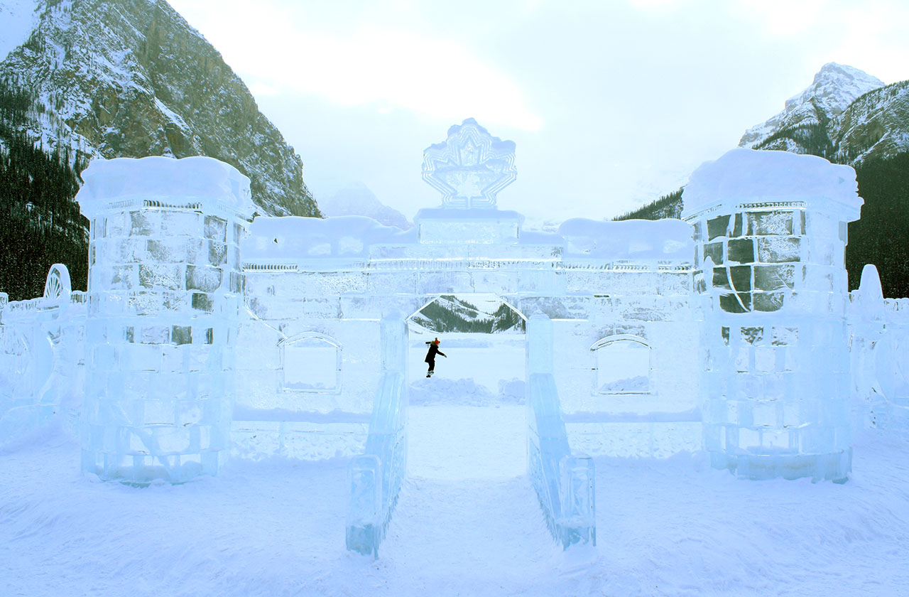 The Fairmont Lake Louise Chateau is right on the lakeshore and offers activities like snowshoeing, a horse-drawn carriage ride, and, the most popular, skating. Outside you’ll also find ice sculptures and an “ice bar” which serves drinks.