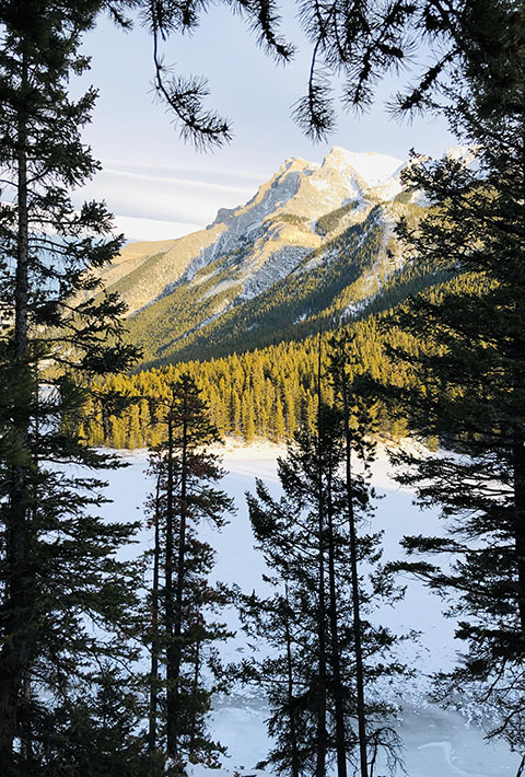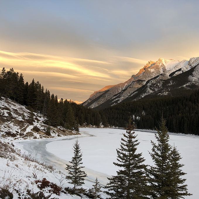 Lake Minnewanka: Walk out onto this frozen lake surrounded by mountains. When driving to the lake, you’ll pass a small parking lot which offers views from above the lake. This offers a beautiful and under-appreciated angle of the lake.