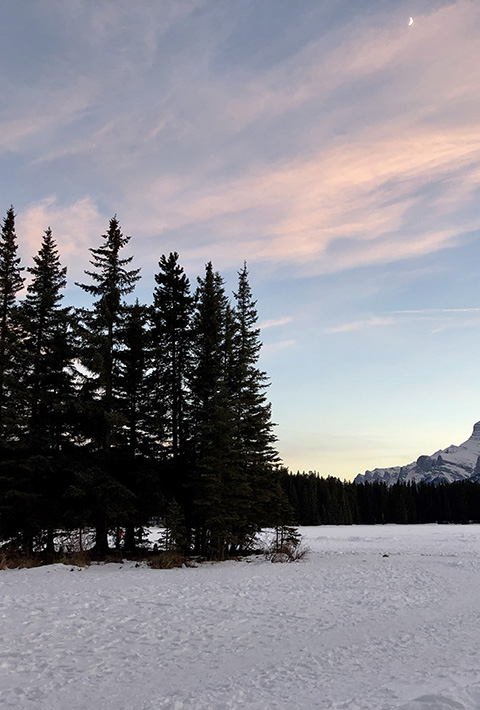Two Jack Lake: This frozen lake is an excellent one to catch for sunset. The snow on the lake gets cleared away in parts to become a natural ice skating rink. You can slip around in your winter boots or bring a pair of skates with you (there isn’t a place to rent skates here).