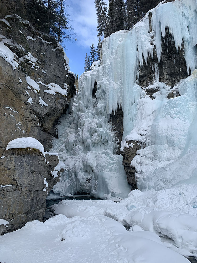 Along the walk you’ll be right up against the canyon walls, and will see numerous smaller frozen waterfalls. There is even a small tunnel to walk through that will bring you face to face with another waterfall.