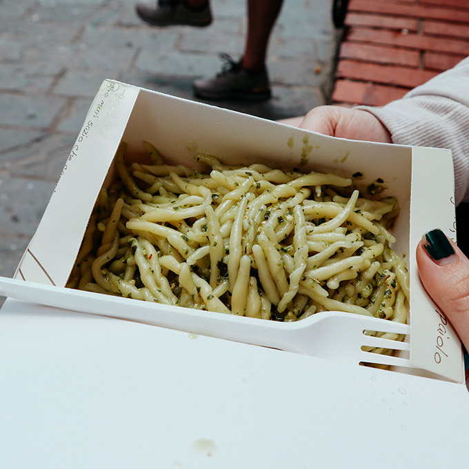 Taste pesto, which originated nearby in Liguria. No matter what you try pesto on — bruschetta, pasta, a panini — it’s genuinely better here. Don’t believe me? Then try it!