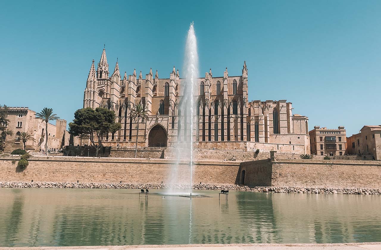In front of the water, you will see the iconic Catedral-Basílica de Santa María de Mallorca. Perched beside the sea, this impressive church is perhaps the best-known landmark of the city.