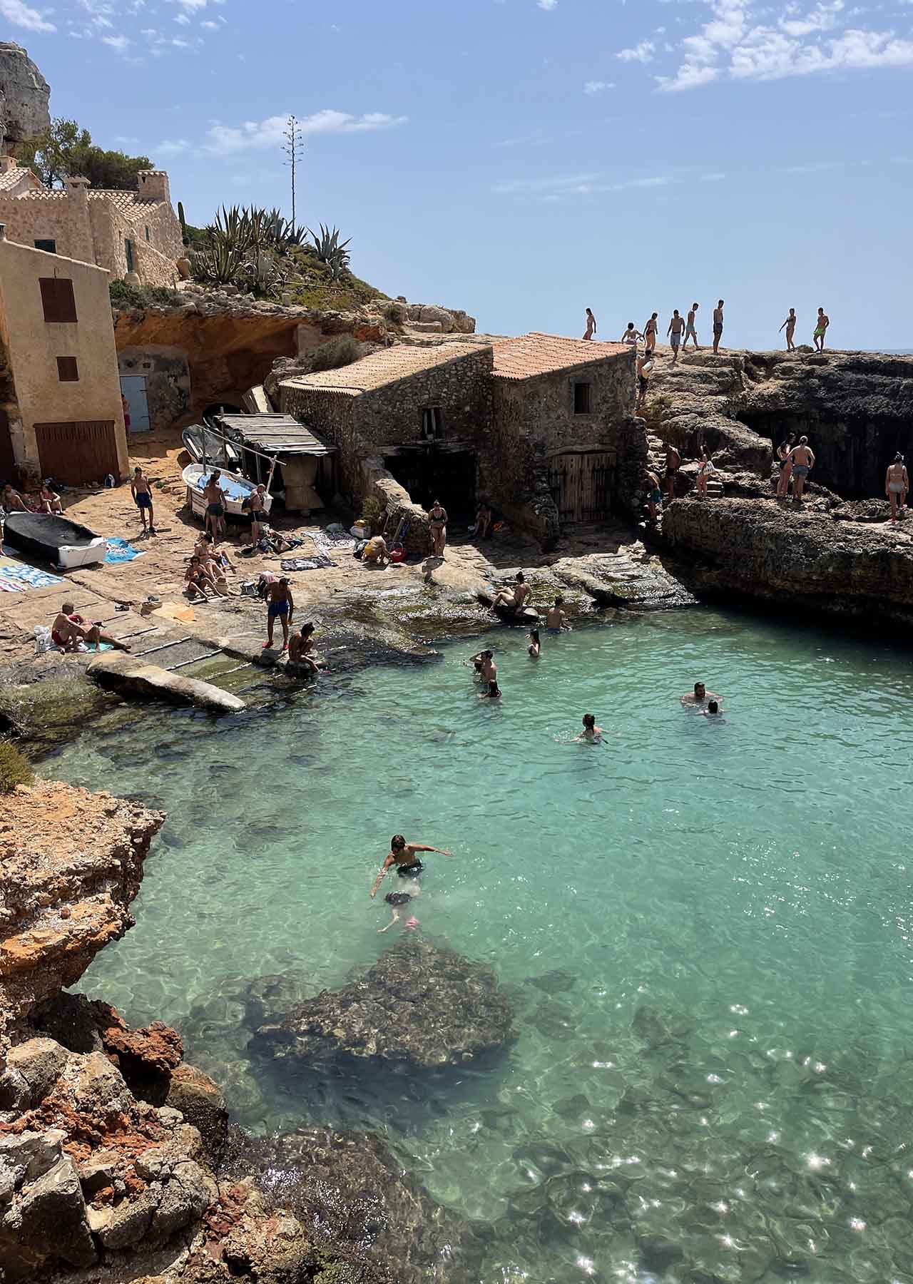 This is a great spot for cliff jumping and there are lots of places to enjoy the sea. In the end, we spent most of our day at S’Almonia because it was so beautiful. The crowd ebbs and flows, and this is one of the reasons people love it.