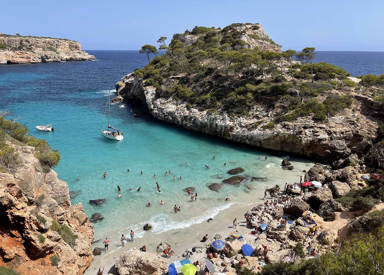 We started our day on the turquoise shores of the hidden Caló des Moro cove, which is just beside Cala s’Almunia beach. While it’s a postcard-perfect beach, it gets absolutely packed.