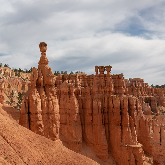 A trip to Bryce Canyon National Park isn’t complete without exploring the park’s famous hoodoos up close. Hike the Queen’s Garden/Navajo Loop starting at Sunrise Point for views of famous hoodoos, like Thor’s Hammer.
