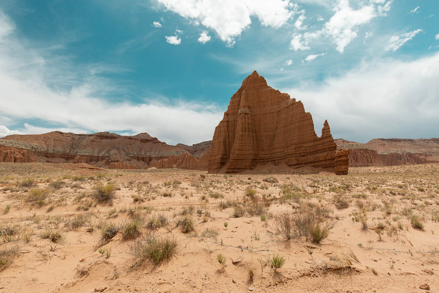 If you’re looking for mesmerizing desert photos, make the drive out to the Temple of the Sun and Moon. These unique rock formations erupt from the ground in Cathedral Valley, only accessible by a long dirt road.