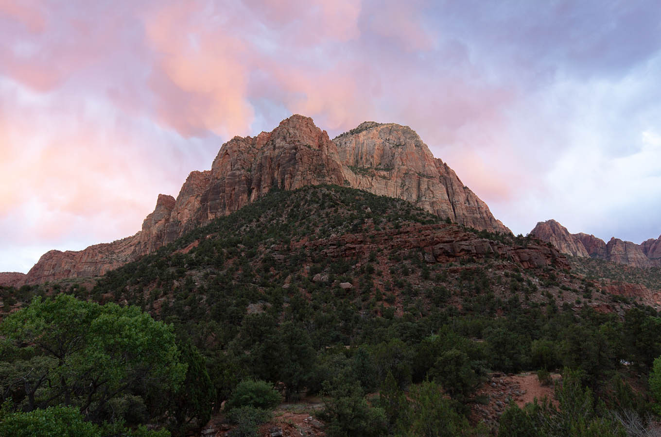 After a long day of exploring Zion National Park, stop for sunset at Canyon Junction Bridge. Facing south, you’ll see The Watchman, a tall rock formation.