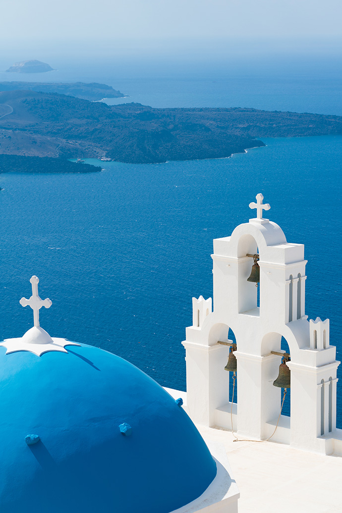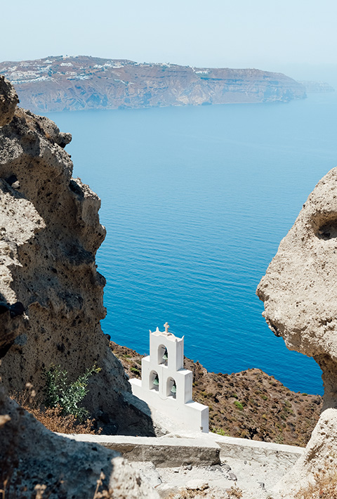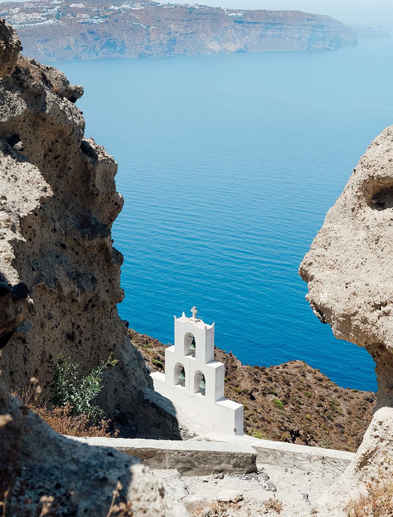 My recommendation is to leave Oia early in the morning, visit the Three Bells, and then hang out in Fira for a little bit longer to have breakfast.