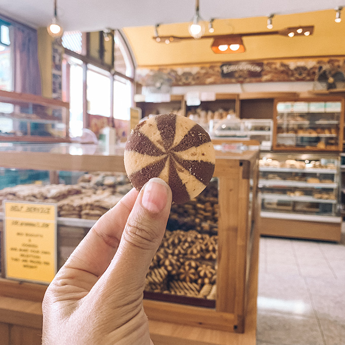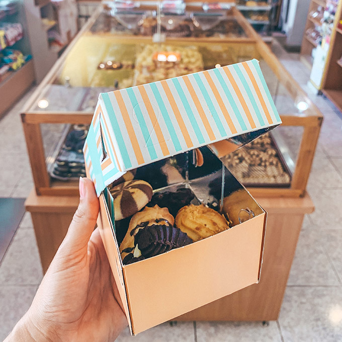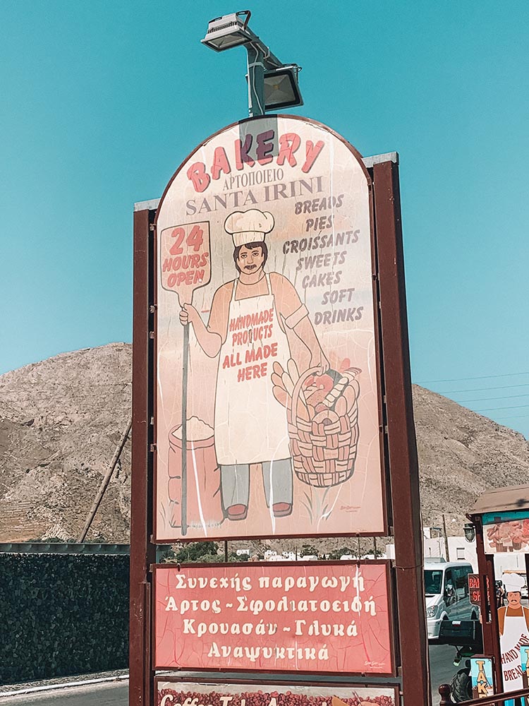 On your way to the Black Sand Beach, make a stop at Santa Irini, which is a famous bakery. I highly recommend getting a box of cookies here!
