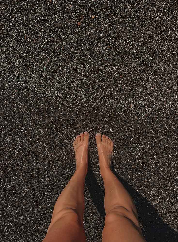 Continue on to Perissa Black Sand Beach. While this isn’t surprising…be prepared — the sand is VERY hot, so be careful.