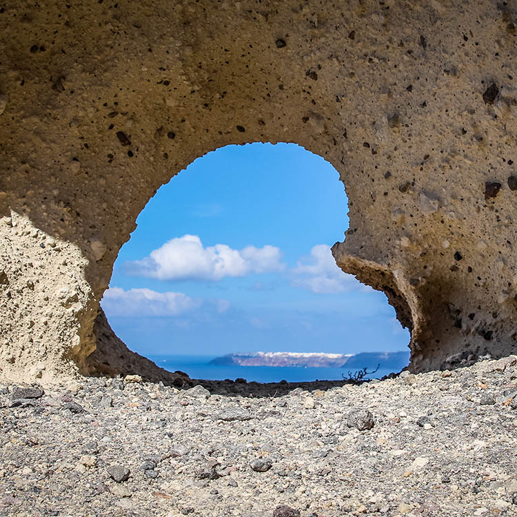 Here you can pop by an area that’s referred to as the “Heart of Santorini.” It’s a small heart-shaped hole that naturally carved into the caldera, and you can see the ocean through it.