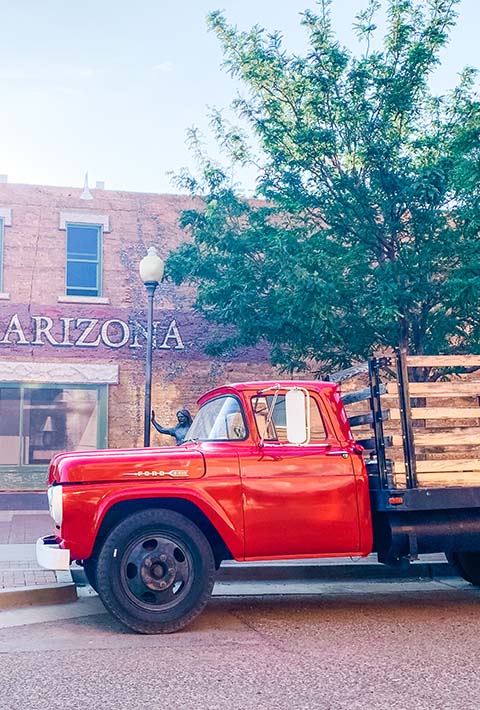 Another fun touristy pit stop to fill up on gas and food is Winslow, Arizona. This small town was made famous from the 1972 Eagles’ hit “Take it Easy” with the lyrics: