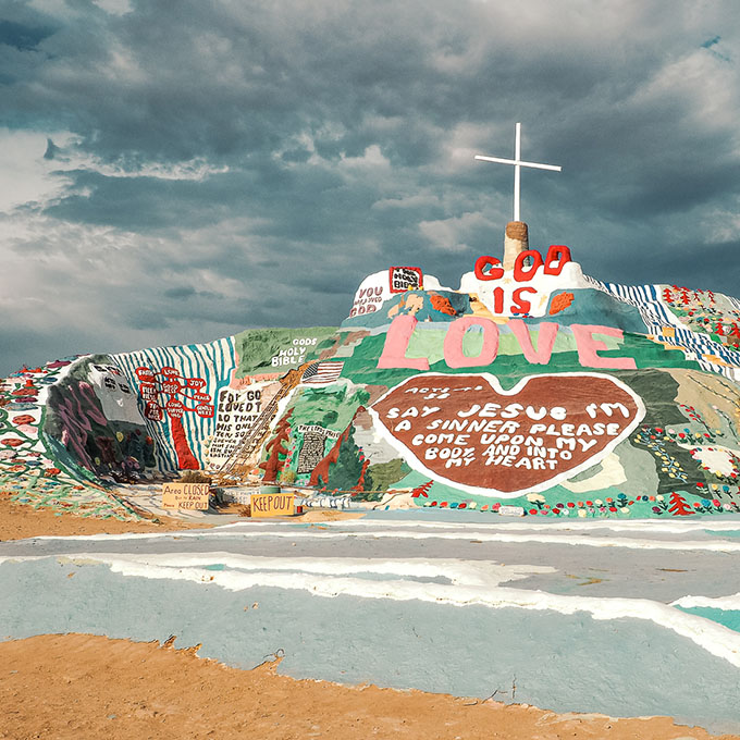 We take every chance to admire colorful street art and artsy creations wherever we go. If you are also into art, take the 50 minutes detour to Salvation Mountain on your way to Joshua Tree National Park. It is just a quick stop but the visionary environment on the hill is indescribable, it is best to see it for yourself!