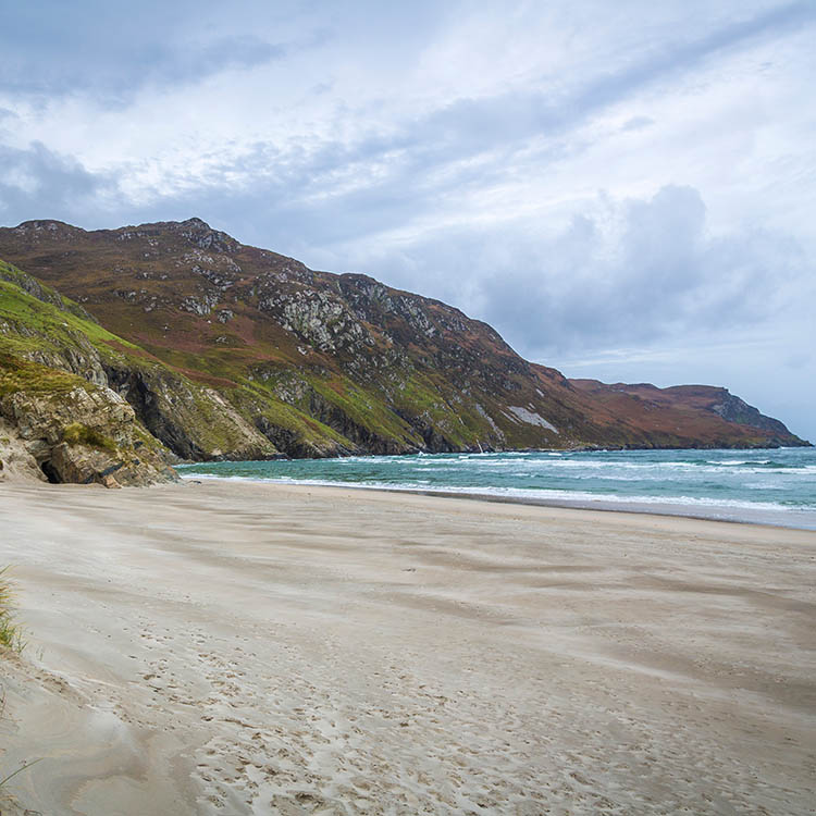 Another 40 minutes from Slieve League, you will find one of Ireland’s most beautiful beaches: Maghera Strand. Park in the lot outside of the farm just before the dunes. Walk westward to a rocky promontory full of caves (it may be washed out at high tide so plan accordingly).