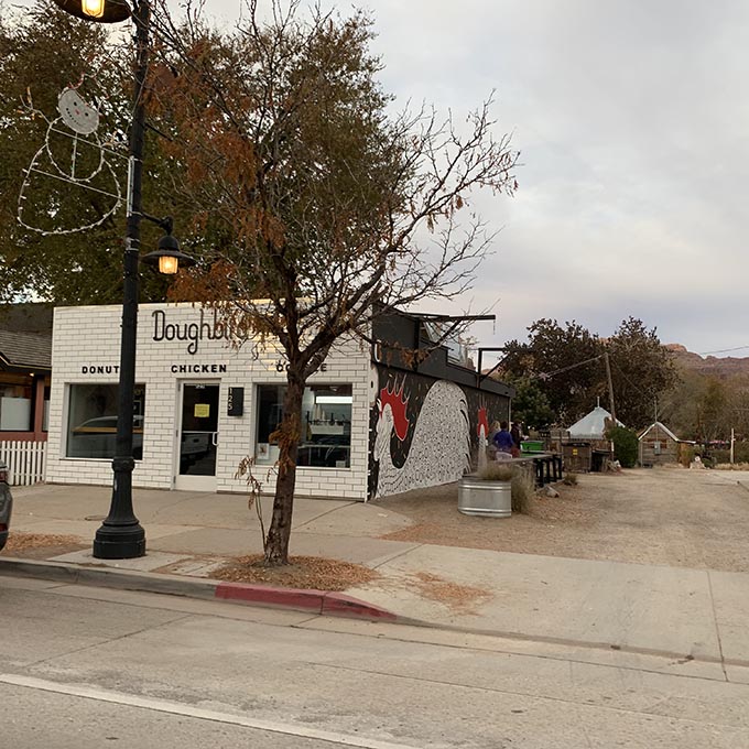 Stop by Doughbird Donut Shop and pick up a coffee for the road!