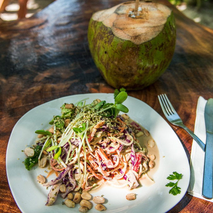 For raw, vibrant and living foods come straight to Raw Love. It’s right off of the beach surrounded by sand, trees and beach huts and it is the perfect place to grab a salad, acai bowl or green smoothie post-yoga. I tried the raw pad thai and it was heavenly.