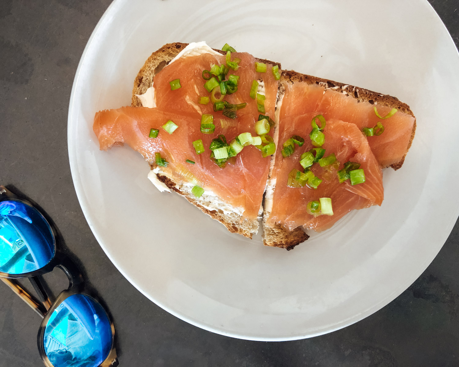 Propped up at the counter watching the bread get made in front of my eyes, I ordered the cold smoked Atlantic salmon on top of sourdough with nova cream cheese and scallions. A slice of their famous chocolate babka was taken for the road, too.