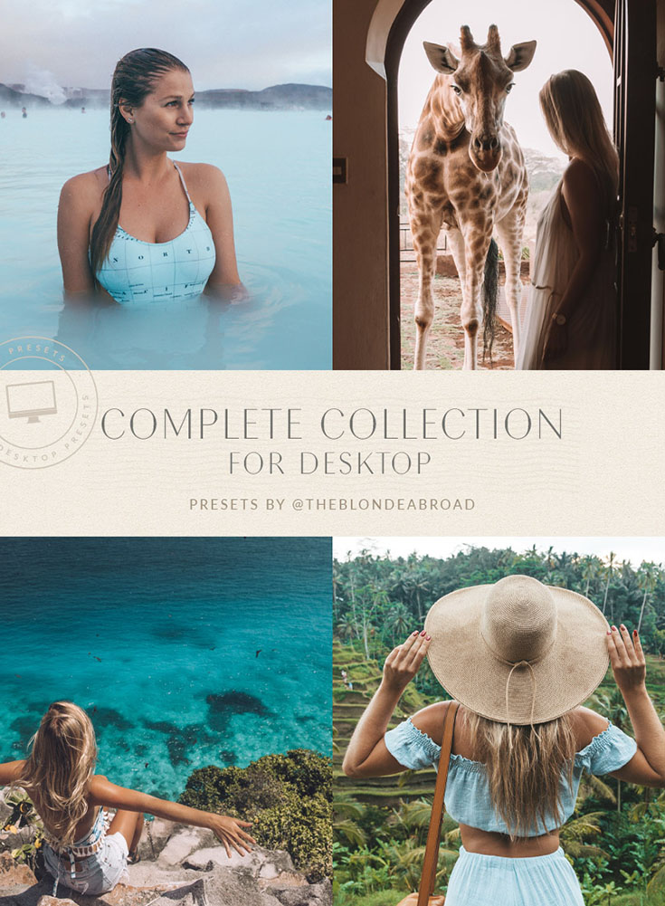 My goal with The Blonde Abroad has always been to make travel more accessible — and now, I want to make photography less intimidating. You can choose from desktop or mobile presets to make photo editing a breeze! Plus, all of my Preset Collections include my in-depth Editing Guide with some of my top editing tips!