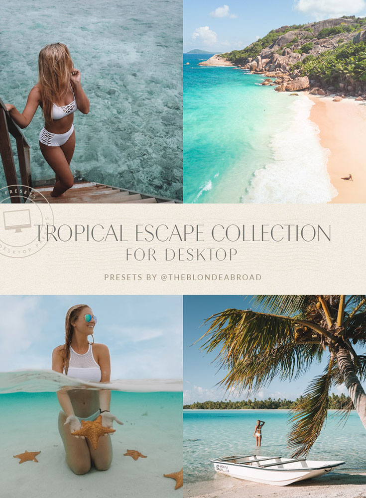 Inspired by my travels through French Polynesia, Panama, The Maldives, Indonesia, and the Seychelles, this collection is all about turquoise water, white sand, and dreamy tropical settings.